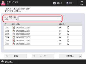 输入文件名称时,按下 [文件名称],输入文件名称,然后按 [确定]。