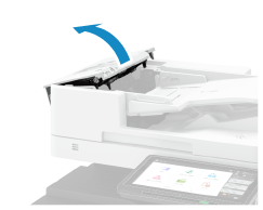 [输稿器卡纸恢复方法]关闭输稿器时,多加留意,切勿让眼睛暴露于稿台玻璃发出的光线之下。
