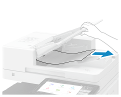 从输稿器的内部或后面取出卡住的原稿。按照控制面板上的说明检查卡纸位置并取出卡纸。