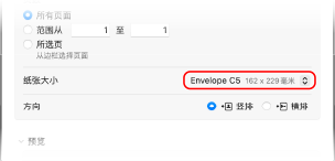 在 [纸张大小] 中,选择所添加信封的尺寸。
