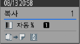 저장 위치의 박스 번호 또는 박스명, 원고 크기, 배율, 양면 설정이 표시됩니다.