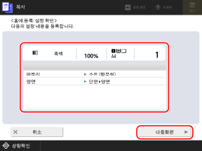 설정을 확인하고 [다음화면]를 클릭합니다.