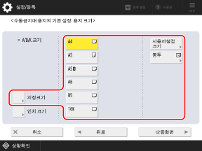 화면이 [수동급지대 용지의 기본 설정] 화면으로 돌아갑니다.