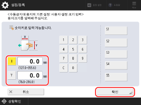 자주 사용하는 비표준 크기를 등록한 경우 [S1]~[S5]를 눌러 해당 크기를 호출할 수 있습니다.