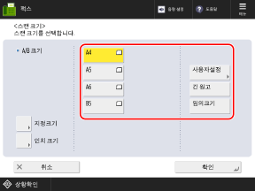 팩스 화면[스캔크기] 화면이 표시됩니다.