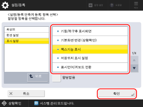 단축키로 등록할 설정 항목을 선택하고 [확인]을 누릅니다.