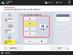 * 원고 크기 선택 화면에 표시되는 크기를 스캔할 경우에만 테두리를 제거할 수 있습니다.