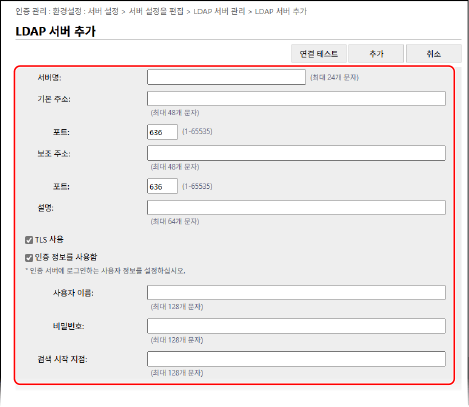 [LDAP 서버 추가] 화면이 표시됩니다.