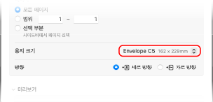 [용지 크기]에서 적재된 봉투의 크기를 선택합니다.