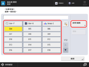 如果您從掃描或傳真畫面註冊目的地,則不需要此步驟。繼續執行步驟 3