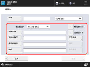 如果選擇 [Windows (SMB)],請使用「\」做為分隔符號。