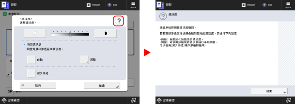 在說明畫面上按下 [結束] 鍵可結束並返回上一個畫面。