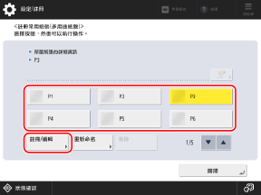 如果您選擇的按鈕包含了已註冊的紙張資訊,則會覆寫已註冊的資訊。