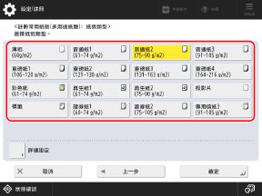 按下 [詳細設定],然後從顯示的清單中選擇紙張類型。