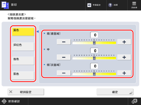 [色彩平衡] 設定會根據已選擇的色彩設定自動變更。