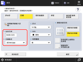 預設情況下,輸入的是機器上設定的日期。如果您希望添加不同的日期,請使用數字鍵輸入。
