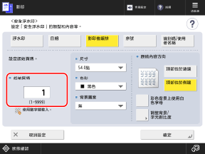 您可以嵌入影印套編號 (用於指示影印套的順序)。這些編號可用作每個影印套的控制編號。