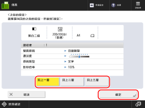 例如,在掃描完單面原稿、需掃描雙面原稿時,按下 [變更設定],然後設定 [雙面原稿]。