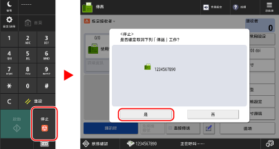 當您使用機器傳送傳真時,您可以按照畫面上的說明取消傳真的傳送操作。