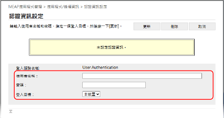 端視 MEAP 應用程式而定,可能需要設定認證資訊。