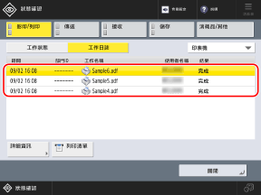 * 如果前一個工作是插印列印工作,所選工作將在前一個作業完成後執行。