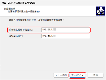 顯示 [標準 TCP/IP 印表機連接埠新增精靈] 畫面。