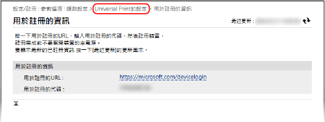 註冊完成後,按一下遠端使用者介面頂部的 [Universal Print的設定]。