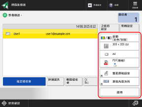 傳送時指定詳細設定如要從通訊錄指定接收者,請按 [傳送至已從「通訊錄」中選擇的接收者]。