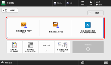 在控制台上,按下 [首頁] 畫面中的 [掃描後傳送]。