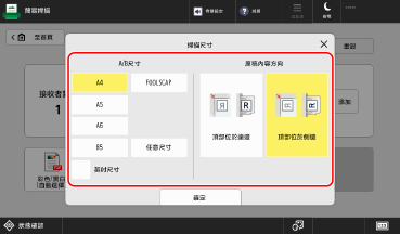 按下掃描尺寸設定按鈕,選擇掃描尺寸和原稿方向。