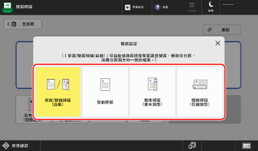 例如,在掃描完單面原稿、需掃描雙面原稿時,按下 [變更設定],然後設定 [雙面原稿]。