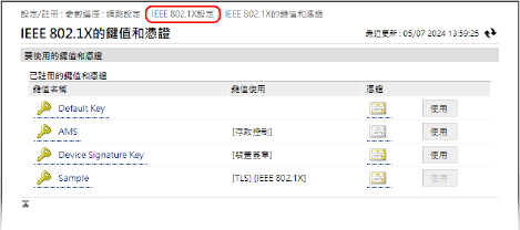 按一下 [網路設定] [IEEE 802.1X設定]。