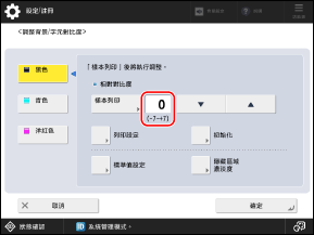 樣本隨即列印,而且 [標準值設定] 畫面再次顯示。