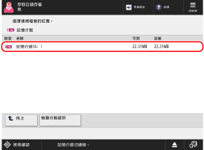 按下 [檢查介質資訊],選擇 USB 記憶體裝置,然後按下 [詳細資訊] 來檢查 USB 記憶體裝置的序號和其他資訊。