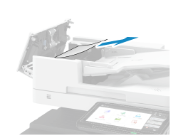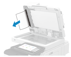 取出卡在送稿機內部或後面的原稿。按照控制台上的指示檢查卡紙位置並取出卡紙。