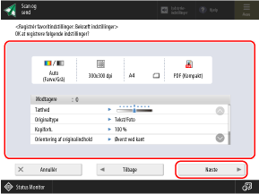 Du kan registrere indstillinger ifølge dit formål og de indstillinger, du vil hente, som "Favoritindstillinger" for scanning, kopiering og andre funktioner.
