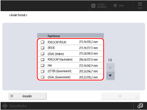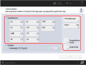 Vælg størrelsen for det ilagte papir i [Standardformat].