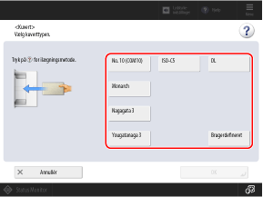 Når du indstiller papirstørrelsen med følgende procedure, indstilles papirtypen automatisk for kuverterne.