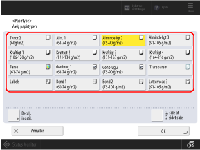 Tryk på [Detalj. indstil.], og vælg papirtypen fra den viste liste.