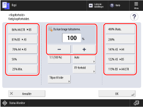 Vælg et fast kopiforhold fra listen, eller indtast et brugerdefineret kopiforhold.