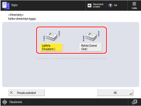 Voit valita, käytetäänkö lajittelu- tai ryhmittelyasetuksia, kun kopioitu paperi luovutetaan.