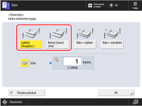 2, syötä numeronäppäimillä se kopioiden määrä, joissa siirrät tulostuskohtaa.