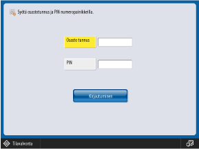 Kun osastotunnusten hallinta on käytössä, sinun on syötettävä osastotunnus ja PIN-koodi, jotta voit kirjautua sisään, kun käytät käyttöpaneelia tai Remote UI (Etäkäyttöliittymä) -sovellusta.