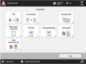 Voit määrittää kopiointiasetukset lajittelun ja nitojalla tehtävän viimeistelyn (viimeistelijällä varustetut mallit) tapaisille toiminnoille.