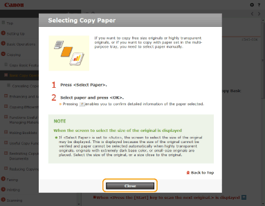 When you click the icon, the current page may go dark and a pop-up window may appear. To return to the page, click [Close] in the pop-up window.