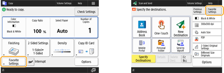 If you frequently use the same combination of settings for copy, fax, and scan, it is convenient that you have those settings registered as <Favorite Settings>.