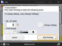 Press <Start Printing> to print the number of copies you specified. If you selected <All Pages> in step 5, the number of copies minus one is printed. If you select <Specified Pages> in step 5, the total number of copies is printed.