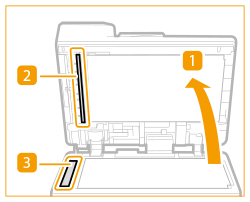 ![]() | Clean the document feed scanning area. Wet a soft cloth with water and wring it out well, then wipe the machine with it. Afterwards, wipe the machine with a soft and dry cloth. Wait until the moisture has completely dried before proceeding to the next step. |