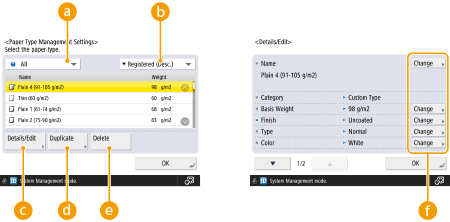 <Paper Type Management Settings>.