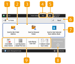 This area displays the status of settings such as the color mode and scan size. To correctly scan the original, make sure to confirm the settings. To change the settings, press the desired button.